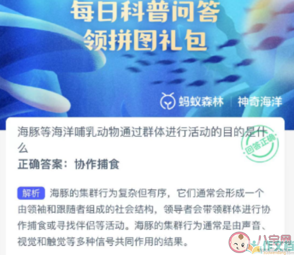 海豚等海洋哺乳动物通过群体进行活动的目的是什么 神奇海洋8月21日答案