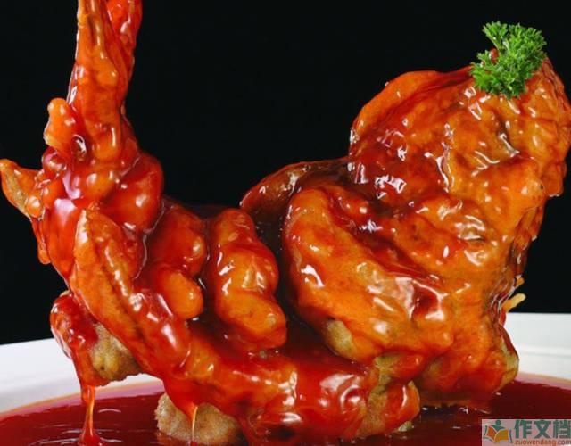 鲤鱼炸至外酥里嫩,浇上糖醋汁,酸甜适口,造型如鱼跃龙门。