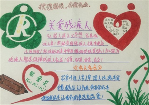 我们大家要行动起来,关爱残疾人,多多帮助残疾人,帮助了别人,自己心里才快乐。
