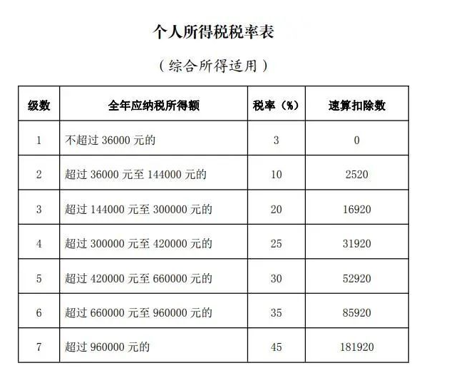 个人所得税税率表