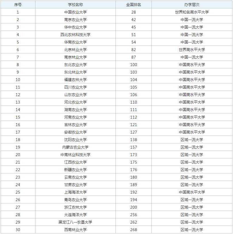 中国农业大学、西北农林科技大学、北京林业大学、南京农业大学、华中农业大学、四川农业大学、东北林业大学、东北农业大学、上海海洋大学、南京林业大学、华南农业大学,这11所大学均为双一流建设高校。