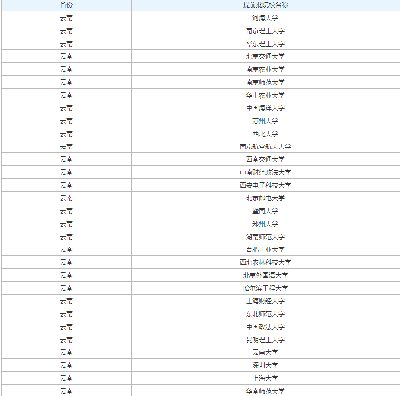 2023云南高考提前批大学名单相关文章: