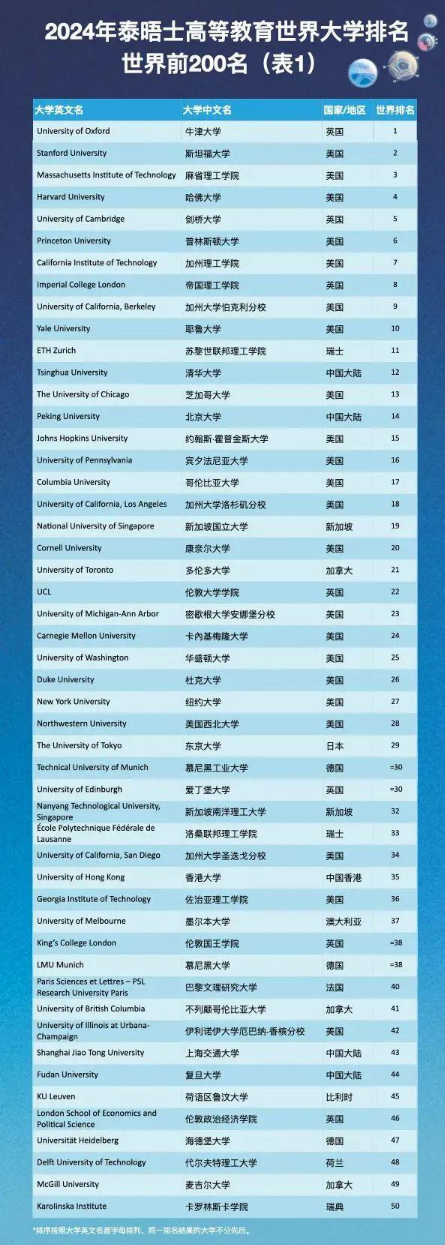 2024泰晤士世界大学学科排名发布相关文章: