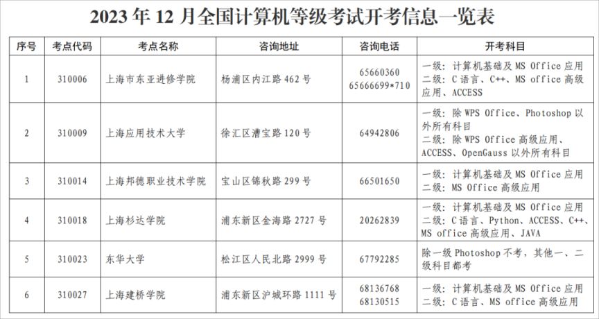 2023计算机等级考试上海地区11月2日报名(安排)