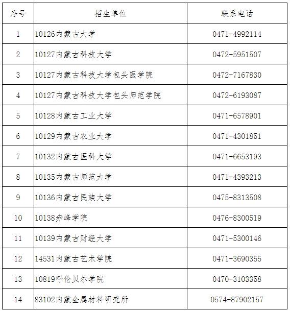 附件:内蒙古自治区硕士研究生招生单位联系方式