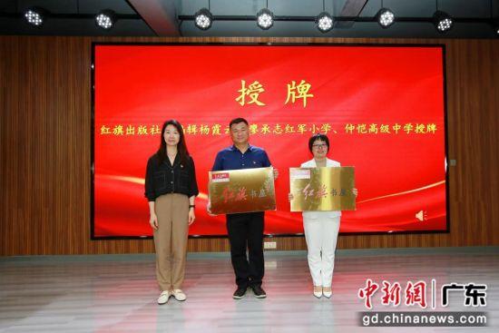 红旗出版社总编辑杨霞云、粤港澳大湾区创新竞争力研究院惠州分院执行院长钟绍伟等出席“红旗书屋”揭牌及授牌仪式。