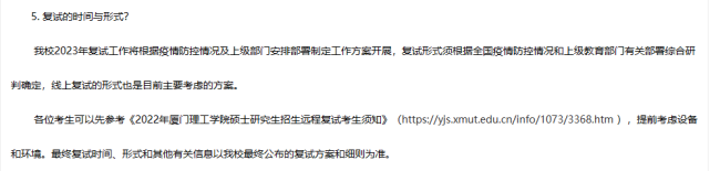也有部分招生单位采取线上复试的形式。比如厦门理工学院官方发布通知中提到:复试形式须根据全国疫情防控情况和上级教育部门有关部署综合研判确定,线上复试的形式也是目前主要考虑的方案。
