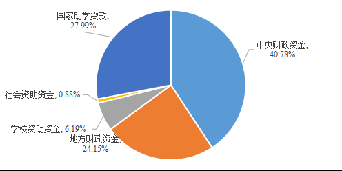 财政资金占资助资金总额的64.94%,是学生资助资金的主要来源,发挥了主导作用。其中,中央财政资金占资助资金总额的40.78%,占财政资金总额的62.80%;地方财政资金占资助资金总额的24.15%,占财政资金总额的37.20%。