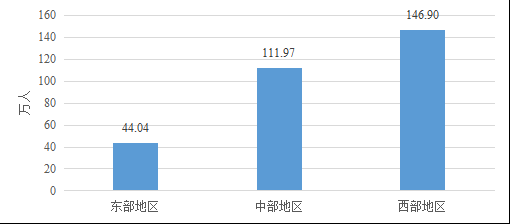 从区域来看,西部地区资助56.23亿元,占70.10%;中部地区资助7.97亿元,占9.94%;东部地区资助16.01亿元,占19.96%。