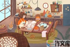 一家人坐在家里包着饺子