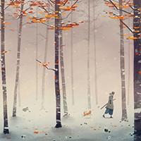 在一阵风中,我轻轻松开了手,面带微笑离开了树枝,落在了那白茫茫的雪上。